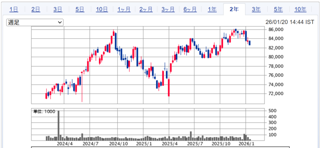 約1年前の2025年1月6日時点では11,882円であったことを考えると、この1年間で大きな上昇は見られず、むしろ足踏み状態が続いていることが分かります。