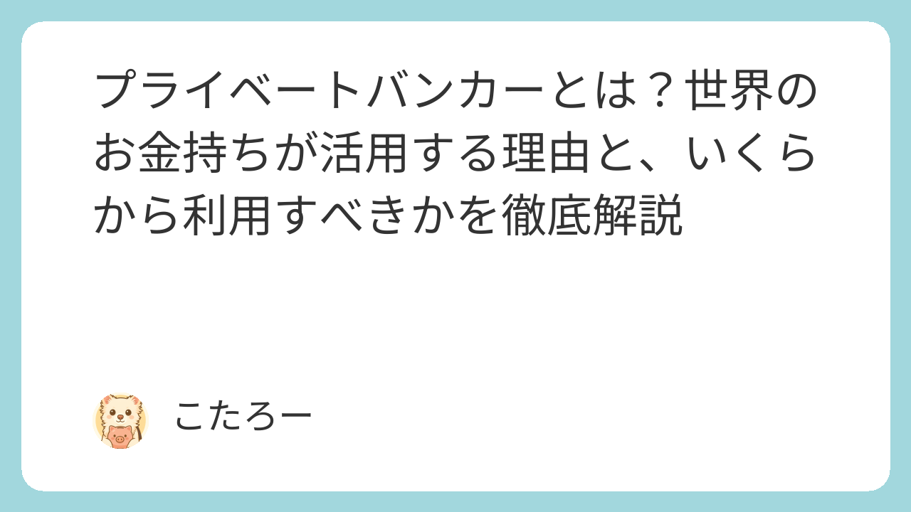 しかし、将来の資産形成を考える上で、プライベートバンカーという存在を知っておくことは大きな武器になります。