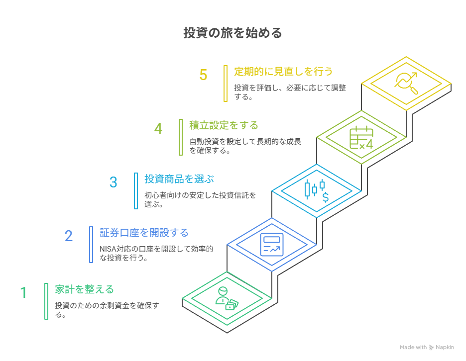 さらに、各ステップを丁寧に進めることで、投資に対する理解も深まり、長期的な資産形成の土台がしっかりと築かれます。
